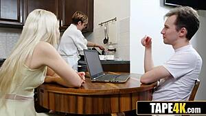 रशियन स्कूलगर्ल 18+ किचन में ड्रिल होती है जब मॉम मीटिंग पर है।