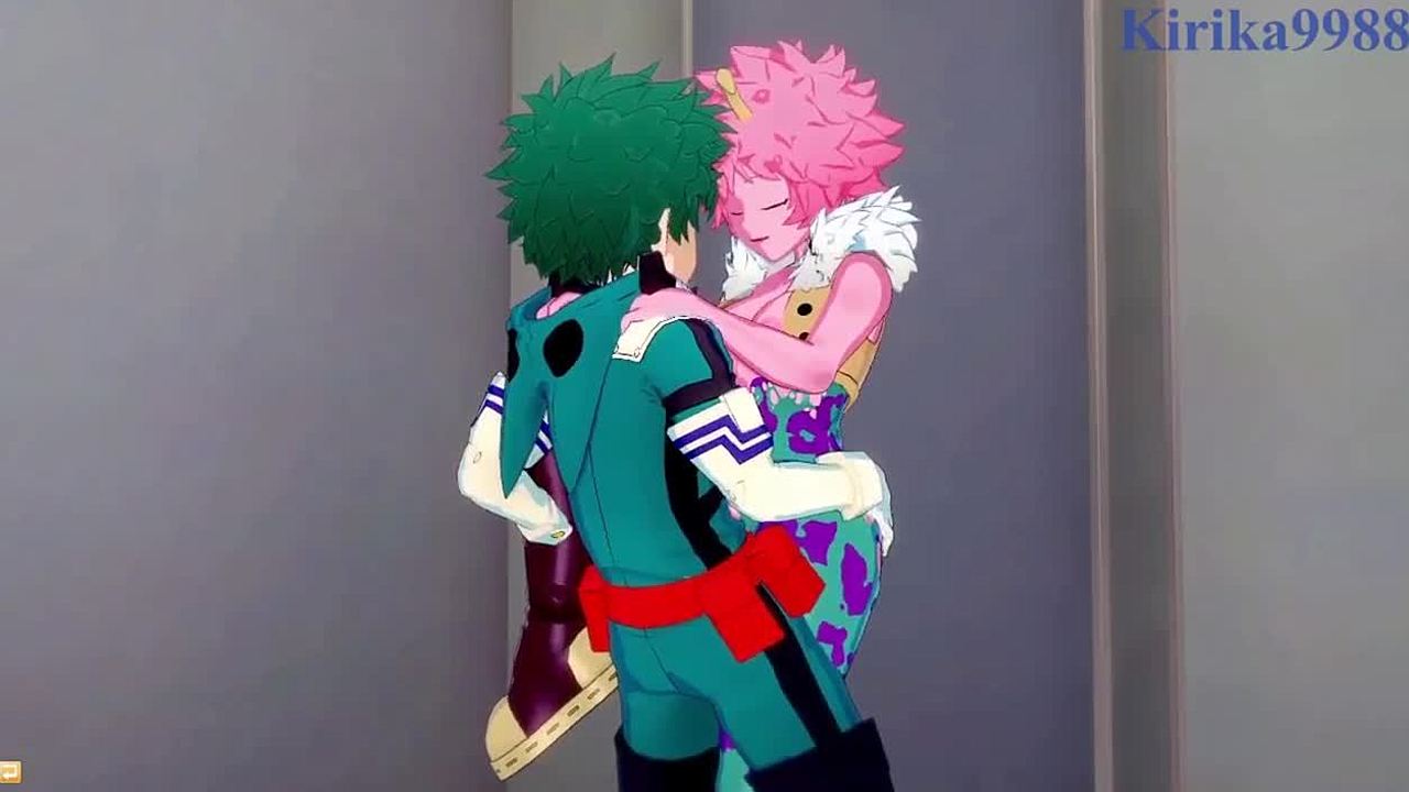 I watch mina ashido and momo yaoyorozu have intense sex with izuku midoriya in hentai