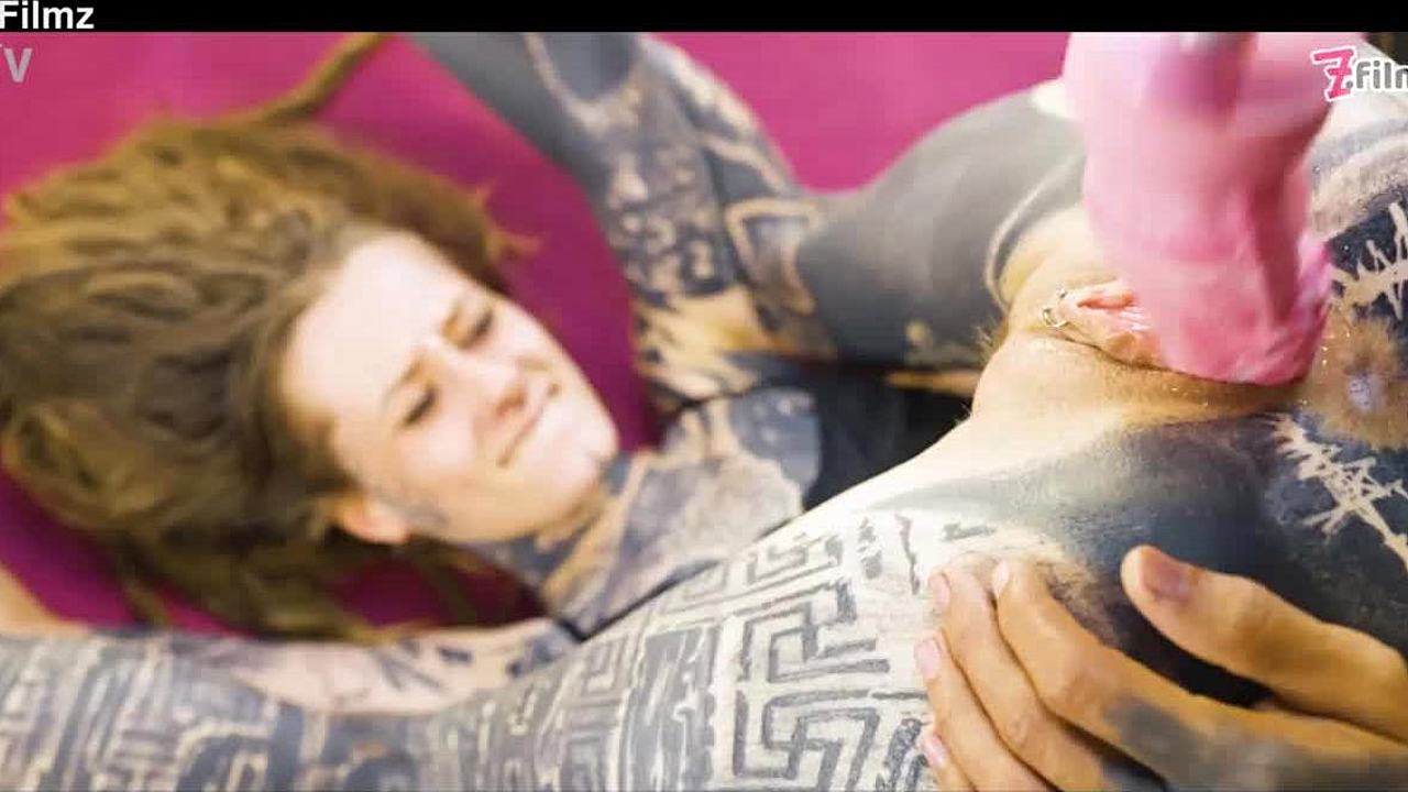 two tattooed lesbians explore anal with big toys
