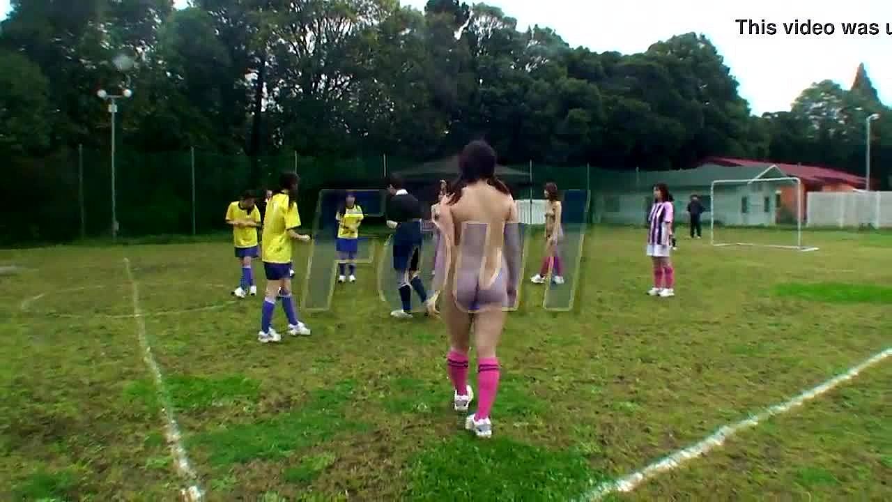 एशियाई लड़कियां नंगी फुटबॉल खेल रही हैं जंगली आउटडोर गेम में!