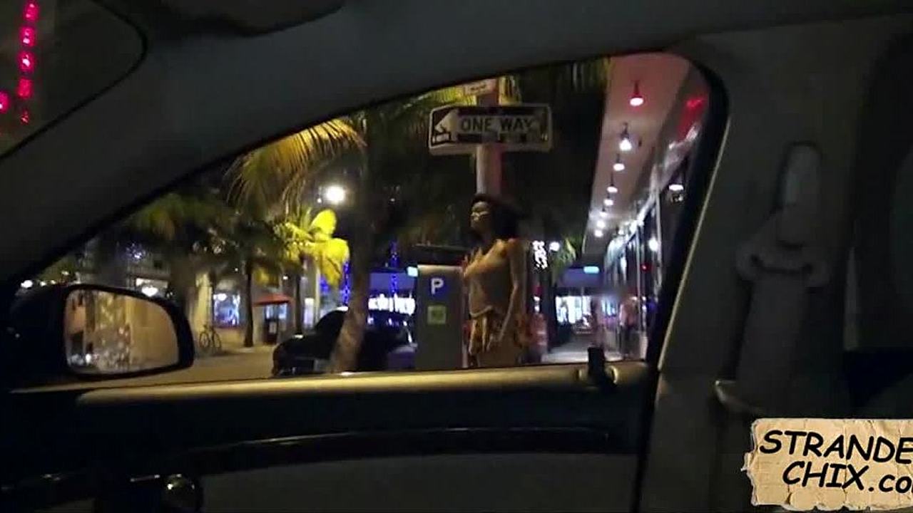 Hitchhiking Teen Rubs Driver's Bulge in Public Outdoor POV.