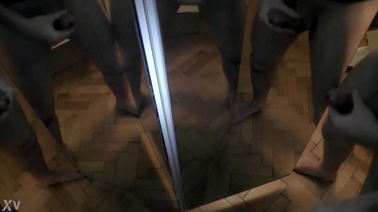 One man surrounded by six cocks in a mirror cumshot scene