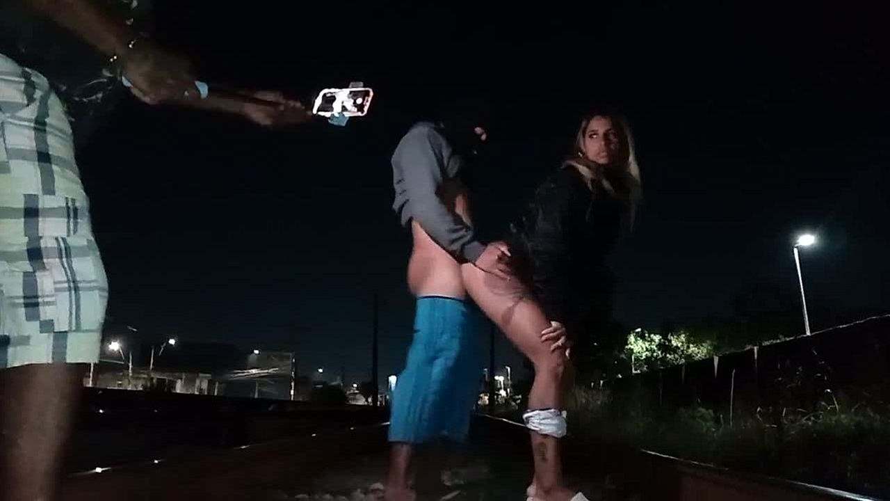 Esposa pede ajuda pra atravessar a linha de trem e da gostoso pro rapaz prestativo