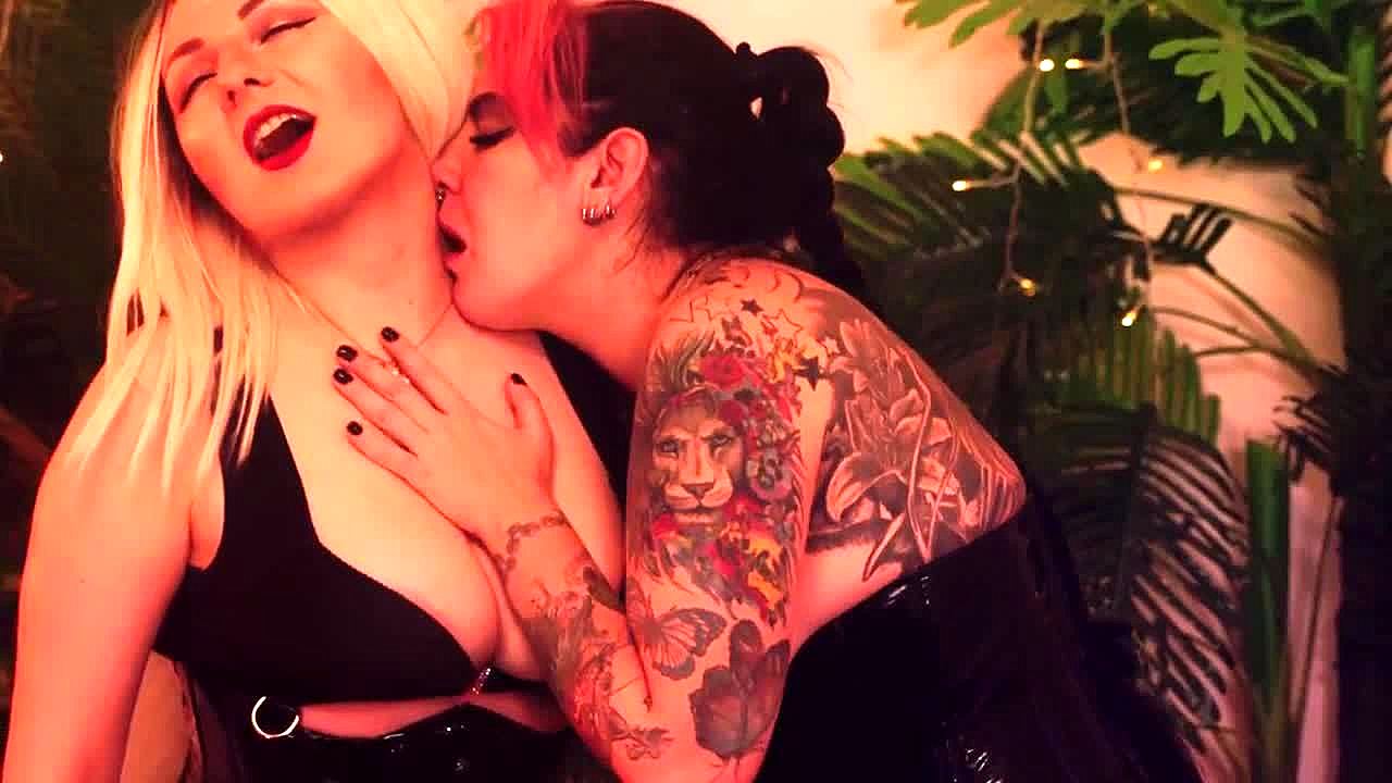 Hot lesbians scissor hard with intense pussy grinding and loud moans.
