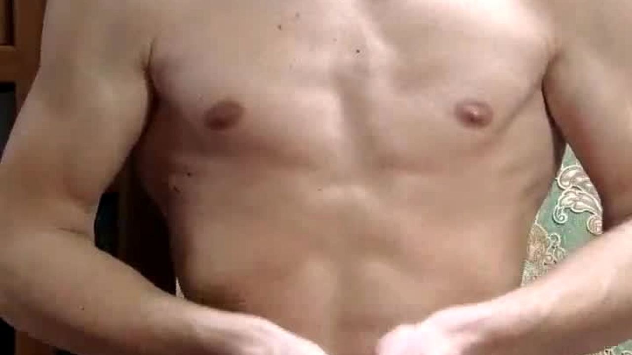 Flexing hard in underwear skinny boy shows off muscular body!