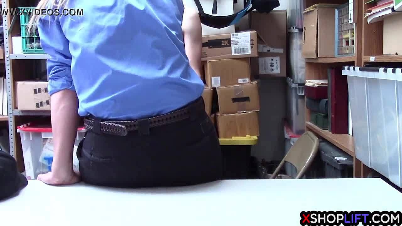 Busty milf guard feels shoplifter's throbbing cock during sneaky inspection